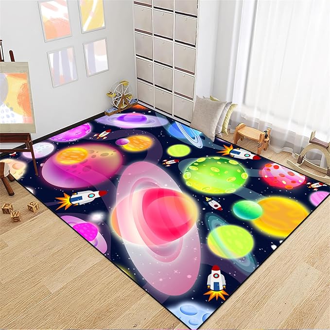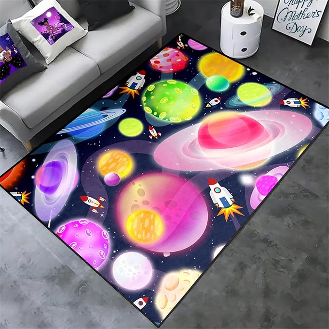 About This SPACE RUG MATERIAL: space rug for boys room, the polyester fiber material is not easy to fade, can...
