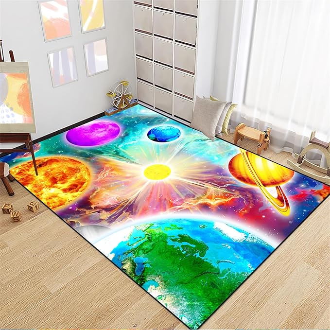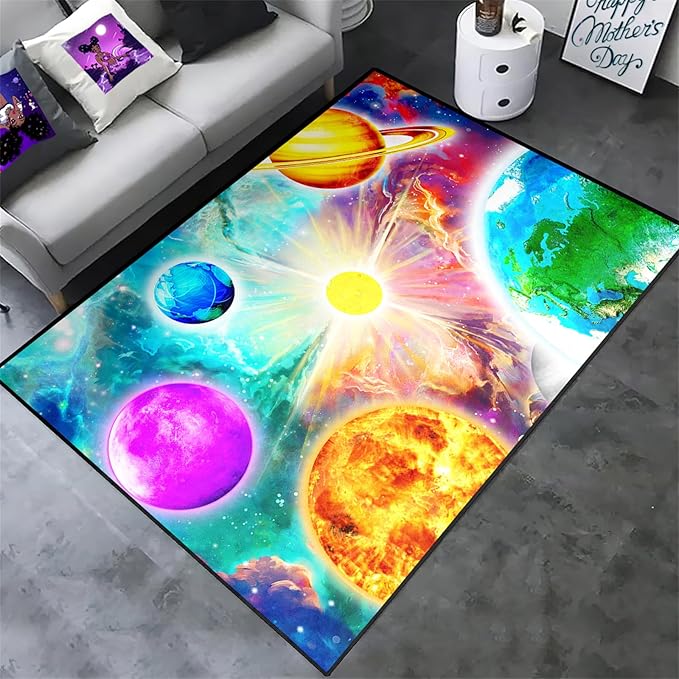 Space Rug for Boys Room - Solar System Rugs for Boys Bedroom Outer Space Area Rug for Boys Bedroom Kids Rugs for Playroom Galaxy Area Rugs for Kids Bedroom Space Rug Living Room,2'5''×4'