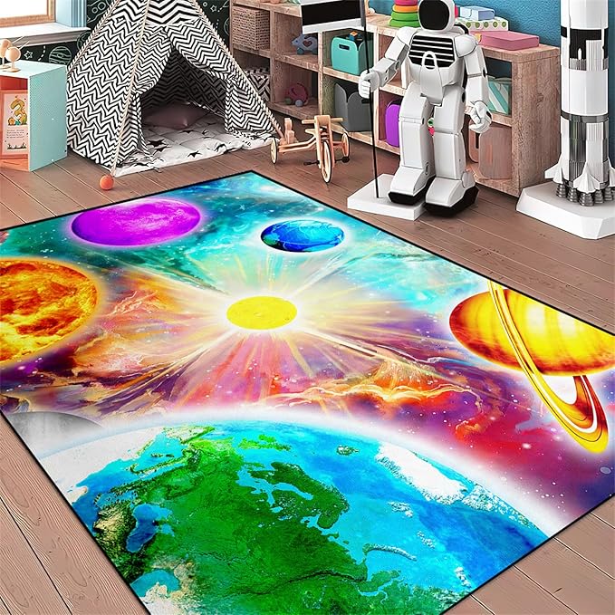About This SPACE RUG MATERIAL: space rug for boys room, the polyester fiber material is not easy to fade, can...