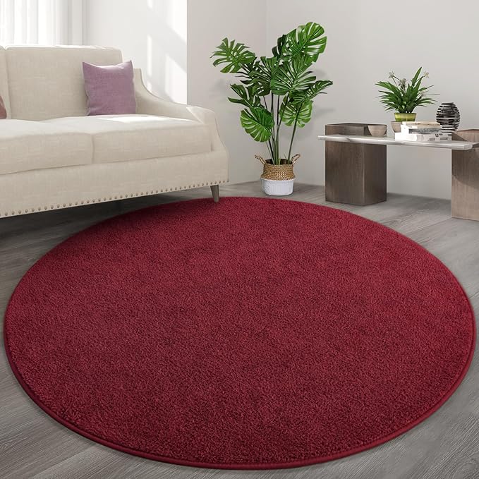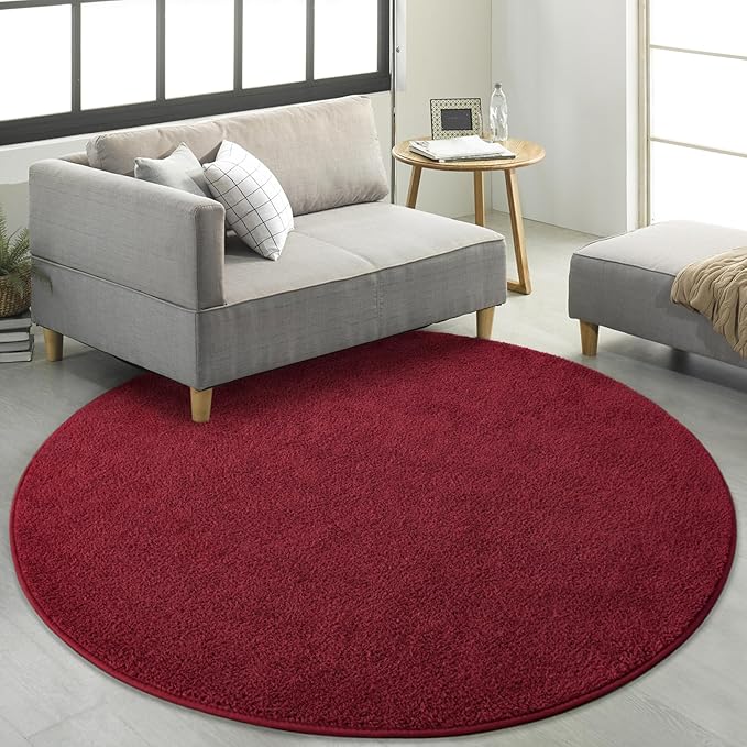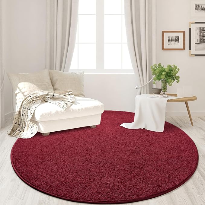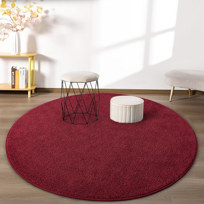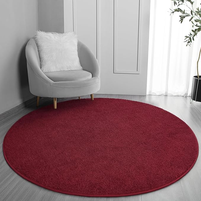 Round Area Rugs for Bedroom Living Room, 4x4 Rose Red Super Soft Comfy Thickened Memory-Foam Indoor Circle Carpets, Modern Aesthetic Minimalist Carpet for Boys Girls Adults Nursery Home Décor