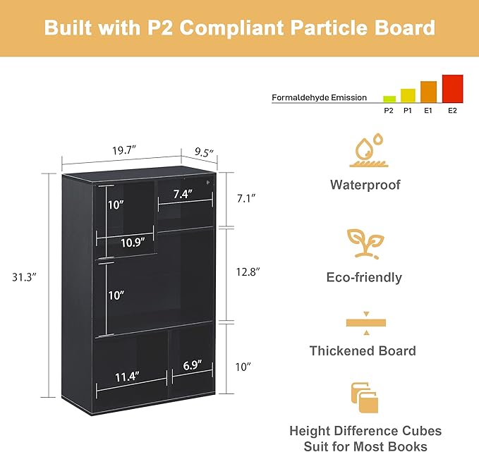 VECELO 5 Cube Modern Bookcases, Fits Tallest Hardcovers, Vertical or Horizontal Use Available, 31 Inch High Cubby Storage Organizer, Suit for Living Room, Bedroom, Children Room, Black