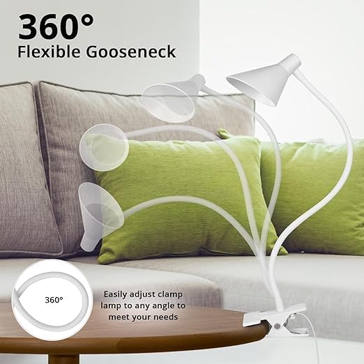 Desk Clip Light,3 Light Modes 10 Dimmable Brightness Reading Light, Flexible Neck Bedside Lamp, Small Table Clamp Lamp for Office, Bedroom, Bed Headboard, Study(White)