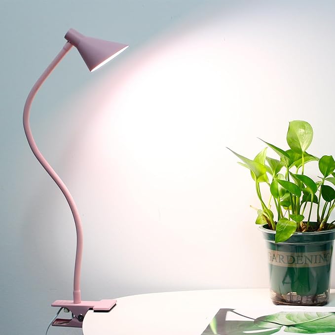 Desk Clip Reading Light, 3 Light Modes 10 Dimmable Brightness, Eye-Caring Bedroom Bedside Lamp, Flexible Neck Clamp Lamp(Pink)