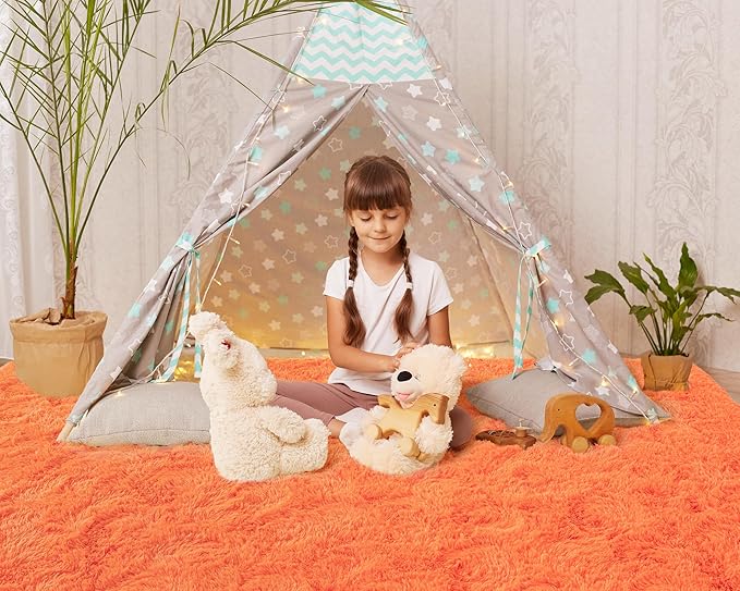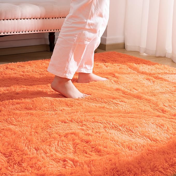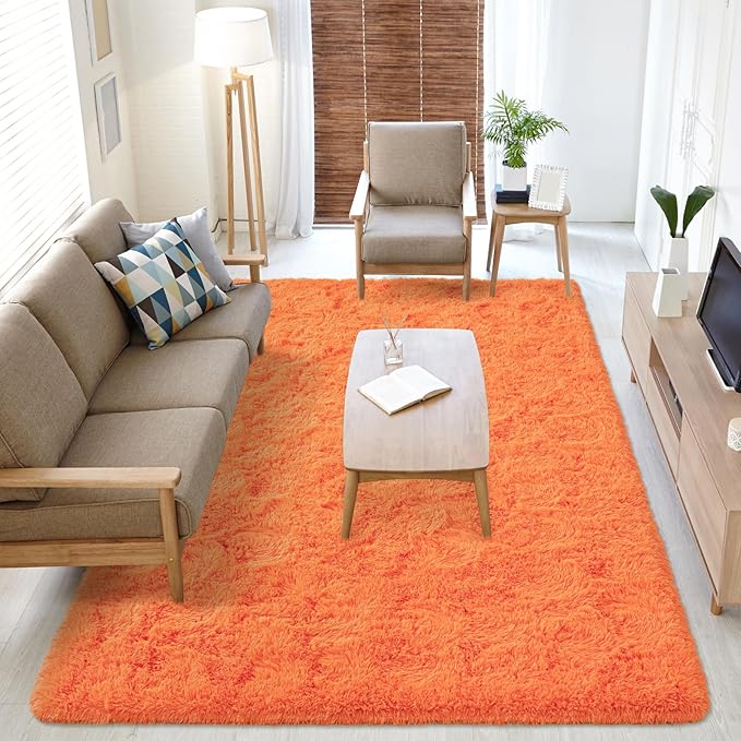 Softlife Area Rug for Living Room, 5x8 Feet Plush Fluffy Rug for Bedroom, Orange Furry Shag Rug for Aesthetic Christmas Room Decor, Ultra Soft Modern Fuzzy Faux Fur Carpet for Kids Nursery Room Dorm