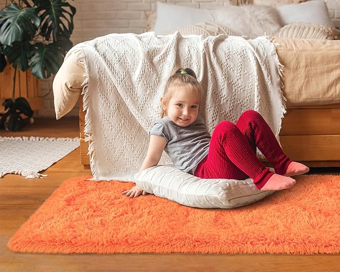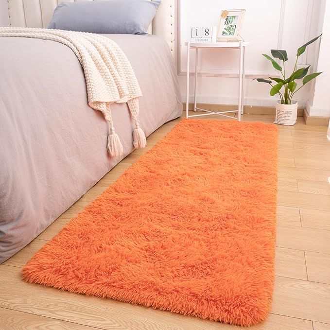 Softlife Area Rug for Bedroom, 2x6 Feet Runner Rug Plush Fluffy Rug for Living Room, Orange Shag Rug for Aesthetic Christmas Room Decor, Modern Fuzzy Faux Fur Carpet for Kids Nursery Room Dorm