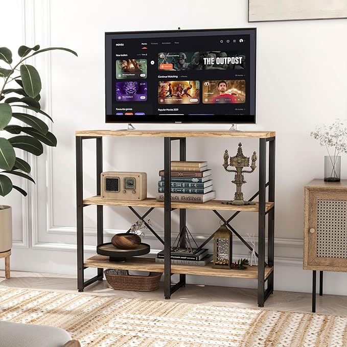 3 Tier Solid Real Wood Bookshelf Rustic Industrial Style, Wooden Storage Shelves Etagere Bookcase Book Shelf Display Shelf for Home Office