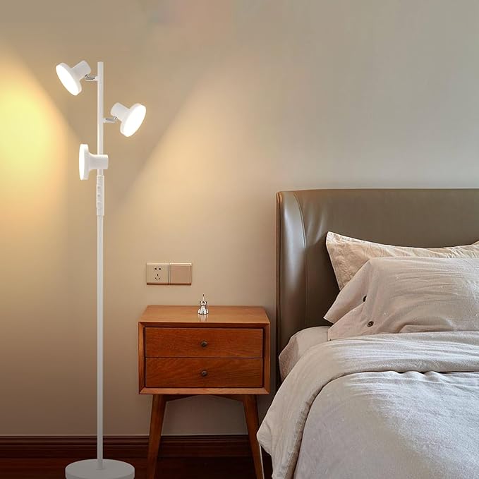 36W White Floor Lamp, Super Bright Tree Floor Lamp LED Standing Lamp with Remote Control, 4 Color Temperatures, 3 Rotatable LED Lights, Dimmable Floor Lamps for Living Room, Bedroom, Office