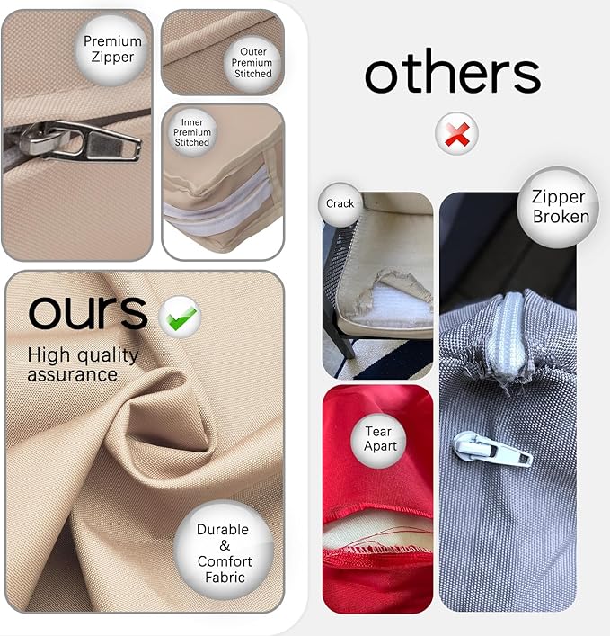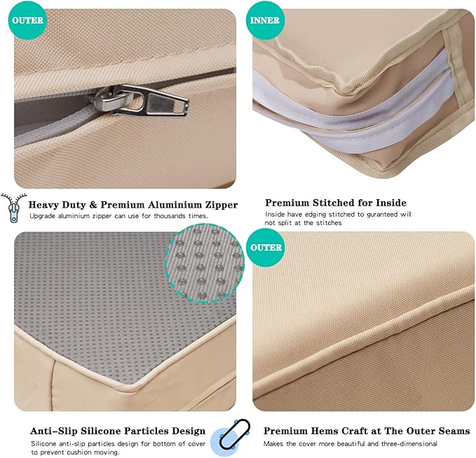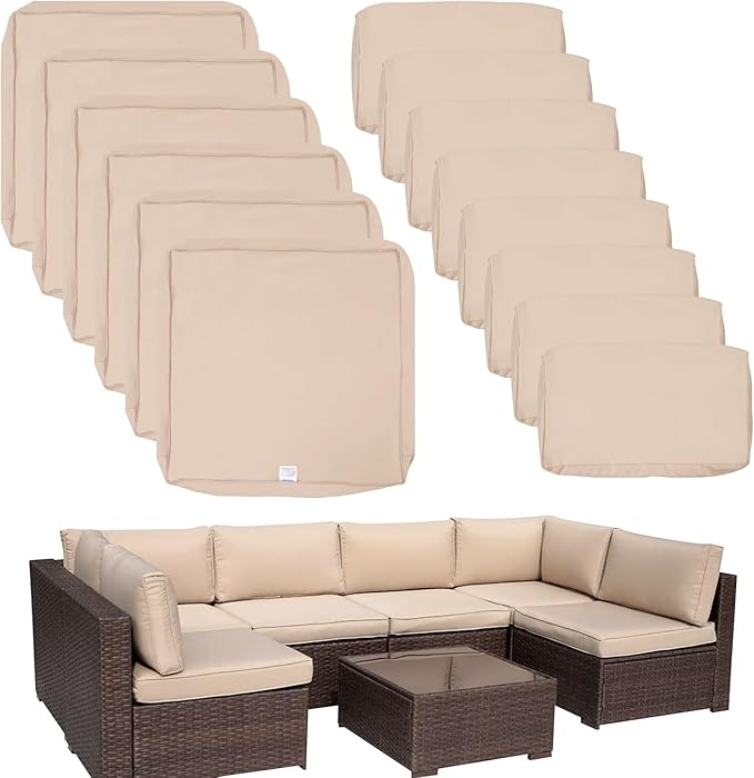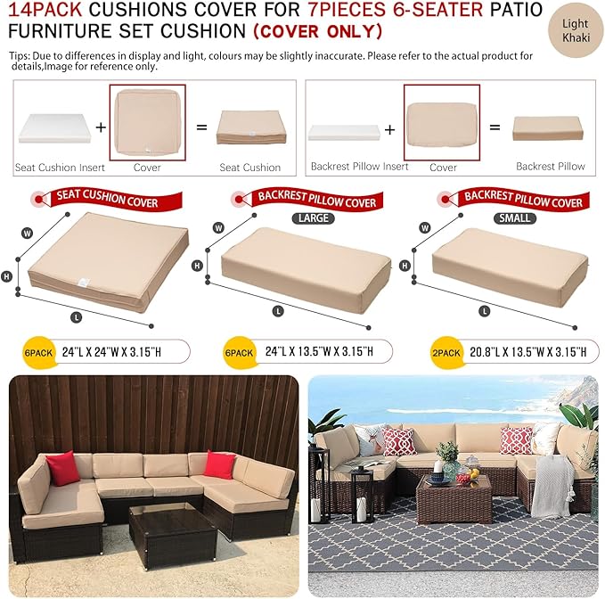 ClawsCover 14Pack Outdoor Patio Seat and Back Cushions Replacement Covers Fit for 7Pieces 6-Seater Wicker Rattan Sectional Couch Chair Furniture Set,Light Khaki-Include Cover Only (Small)