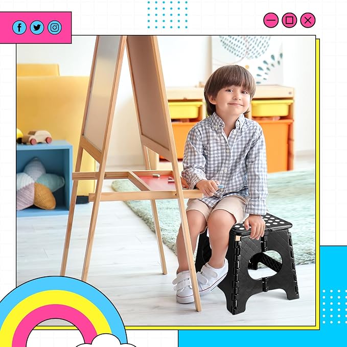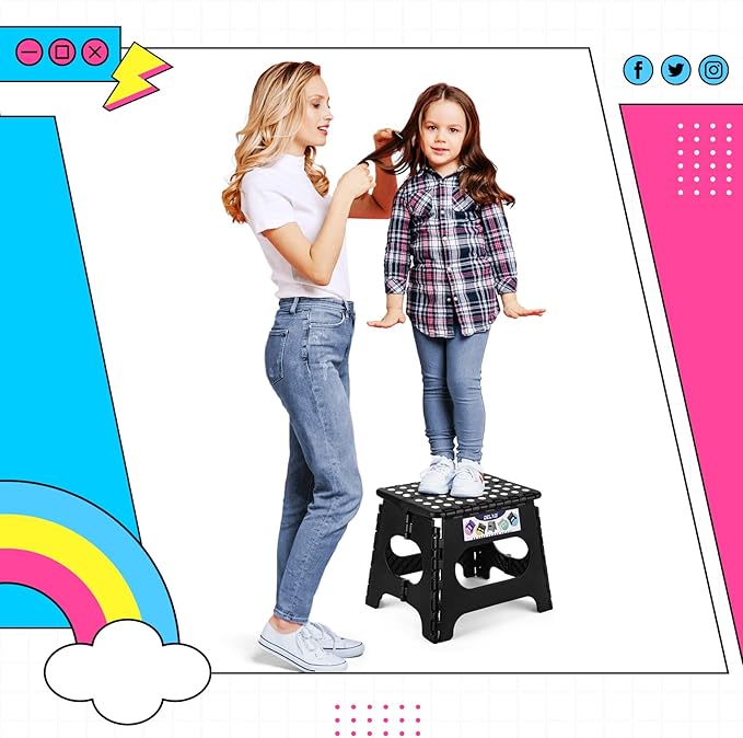 Delxo Folding Step Stool,11 Inch Non-Slip Foldable Step Stools for Kids and Adults,Portable Foldable Step Stool Lightweight Small Folding Stool with Handle for Kitchen Bathroom in Black,1 Pack