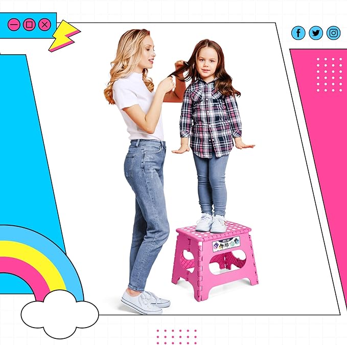 Delxo Folding Step Stool,11 Inch Non-Slip Foldable Step Stools for Kids and Adults,Portable Foldable Step Stool Lightweight Small Folding Stool with Handle for Kitchen Bathroom in Pink,1 Pack