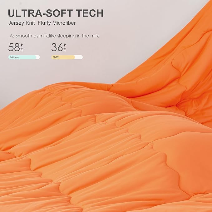COTTEBED Reversible Softness Bright Orange and Beige King Size Comforter Set Clearance, Jersey Knit T-Shirt Feel California King Cozy Bedding Down Blanket Quilt & Pillowsham for Women Men All Season