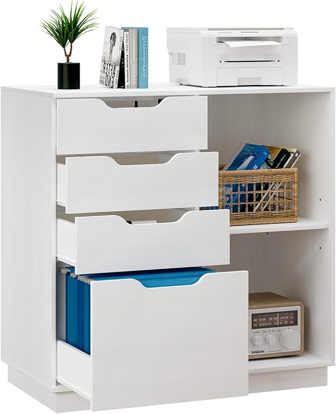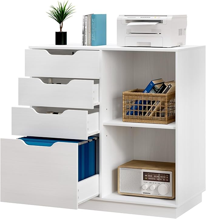 About This PAG-Mass 4 Drawers Lateral File Cabinets, Wood Filing Cabinet, Printer Stand with Open Storage Shelves for Home Office,...