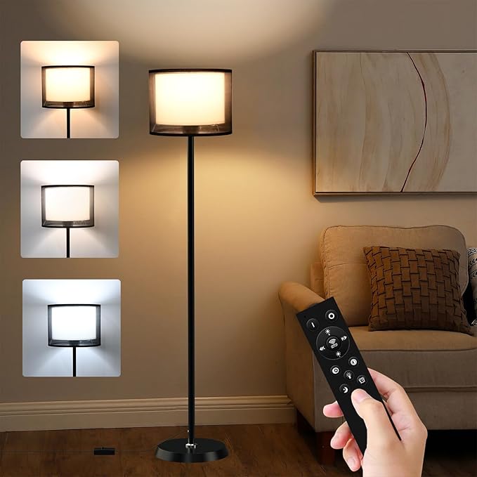 VNPONV LED Floor Lamp for Living Room, 3 Color Temperature Floor Lamp with Remote Control and Stepless Dimmable Colors Temperature for Bedroom, Study Room, Office, 12W Bulb Included, black-2 (Black)