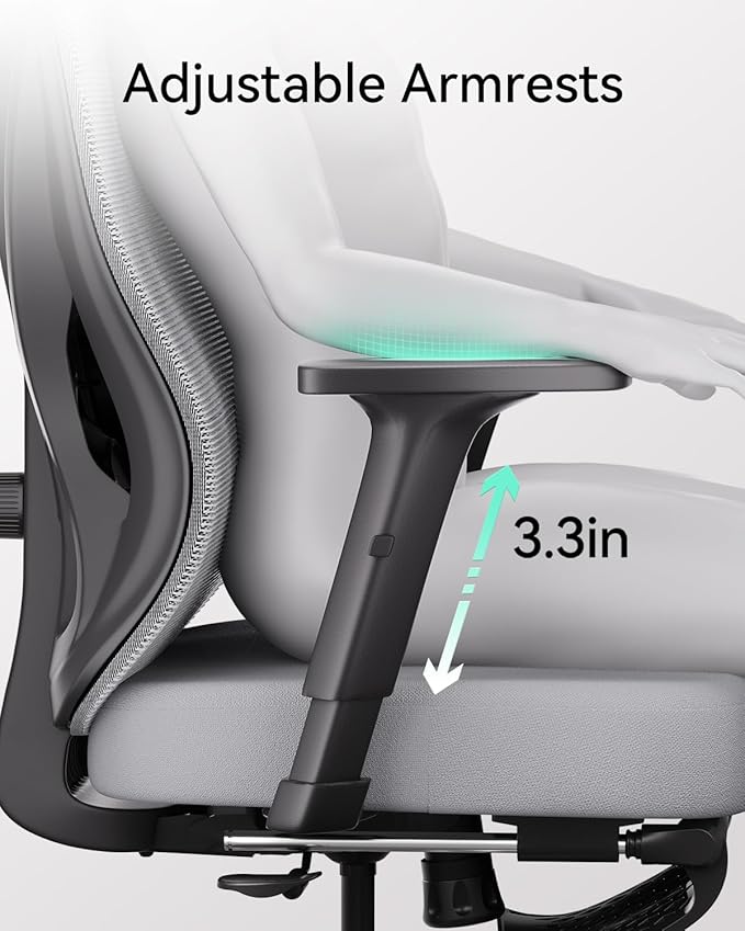 Hbada Ergonomic Office Chair, Desk Chair with Adjustable Lumbar Support and Height, Comfortable Mesh Computer Chair with Footrest 2D Headrest, Swivel Tilt Function Grey