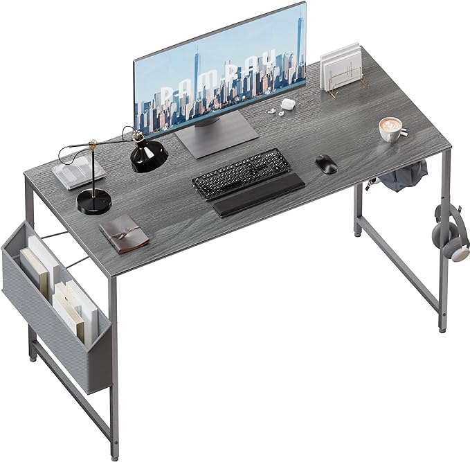 Pamray 47 Inch Computer Desk for Small Spaces with Storage Bag, Home Office Work Desk with Headphone Hook, Small Office Desk Study Writing Table