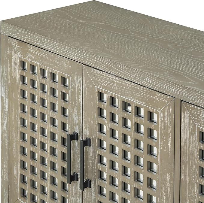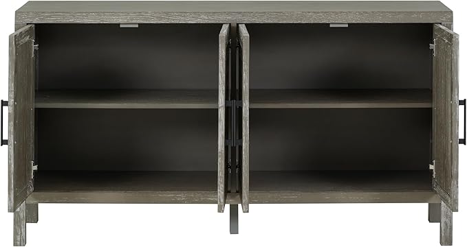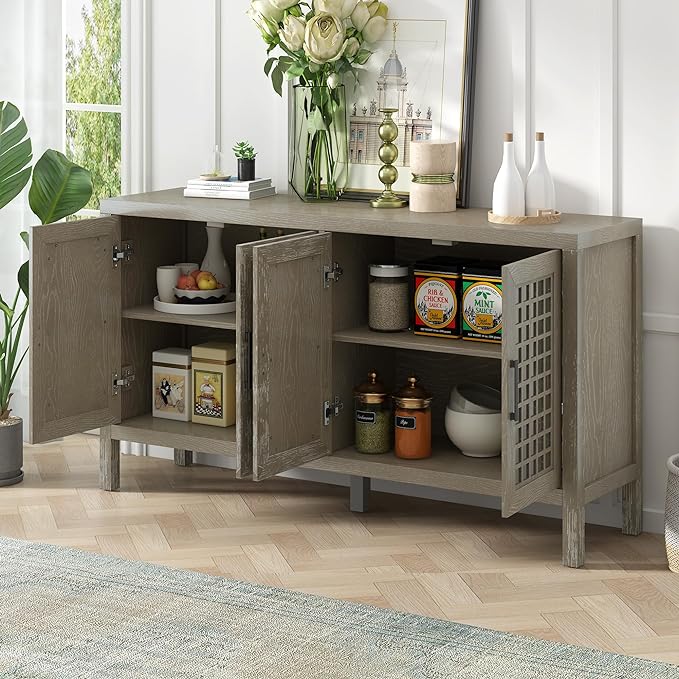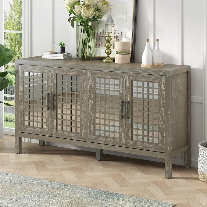 Merax Sideboard Buffet Cabinet, with Storage and 4 Mirror Doors, Retro Farmhouse Style, for Living, Dining Room and Kitchen, Grey