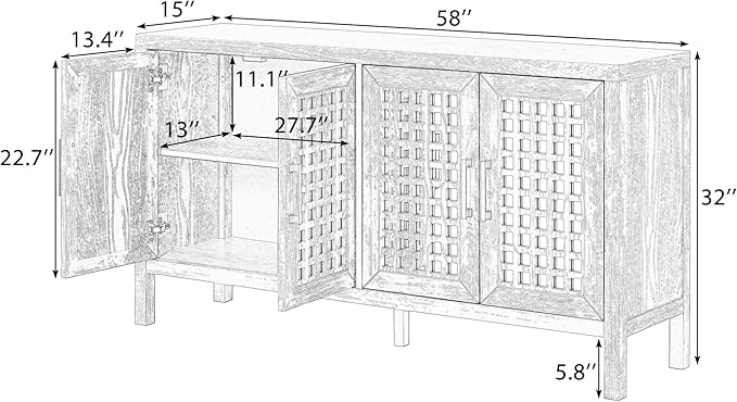 About This 【Sturdy Wood Construction】Made of acacia wood, rubber wood, MDF and OAK brushed material, this buffet cabinet is not...