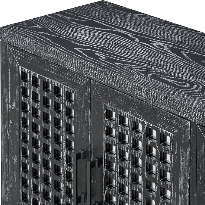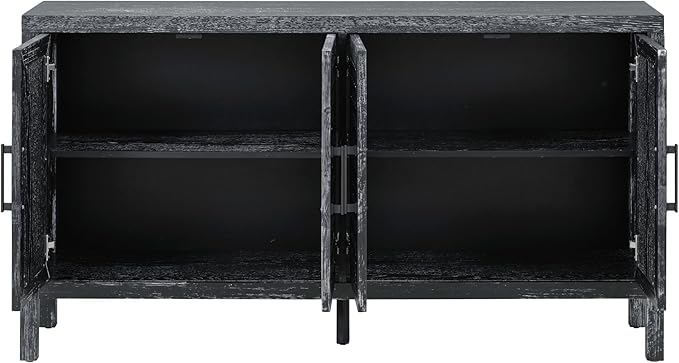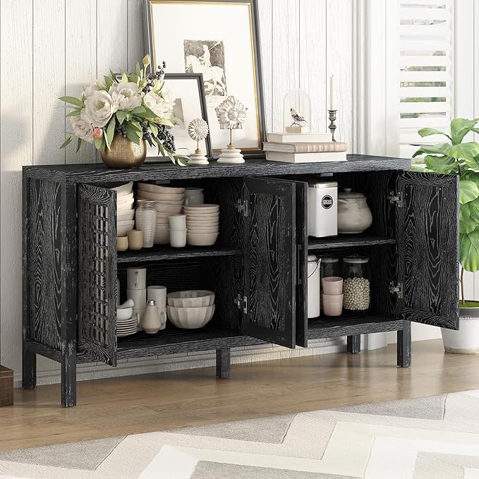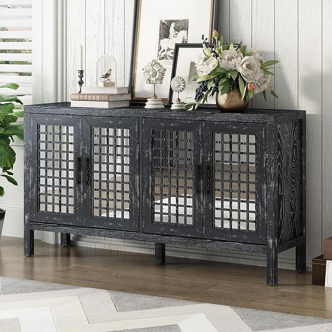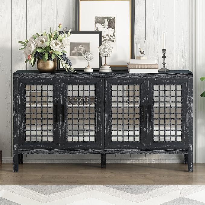 Merax Sideboard Buffet Cabinet, with Storage and 4 Mirror Doors, Retro Farmhouse Style, for Living, Dining Room and Kitchen, Black