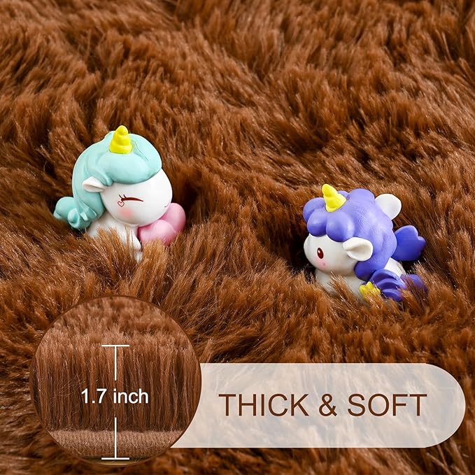 Noahas Ultra Soft Fluffy Bedroom Rugs,2.6' X 5.3' Oval Coffee Fluffy Rugs for Bedroom,Small Throw Rugs, Kids Room Carpet Modern Shaggy Area Rugs Home Decor