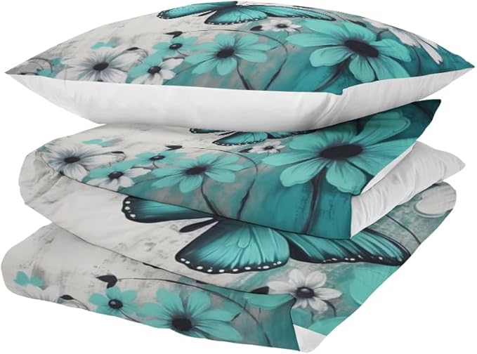 About This 3 PIECES BUTTERFLY FLORAL COMFORTER SET -Queen Size: 1 comforter 90x90 inches, 2 pillow cases 20x30 inches. PREMIUM...