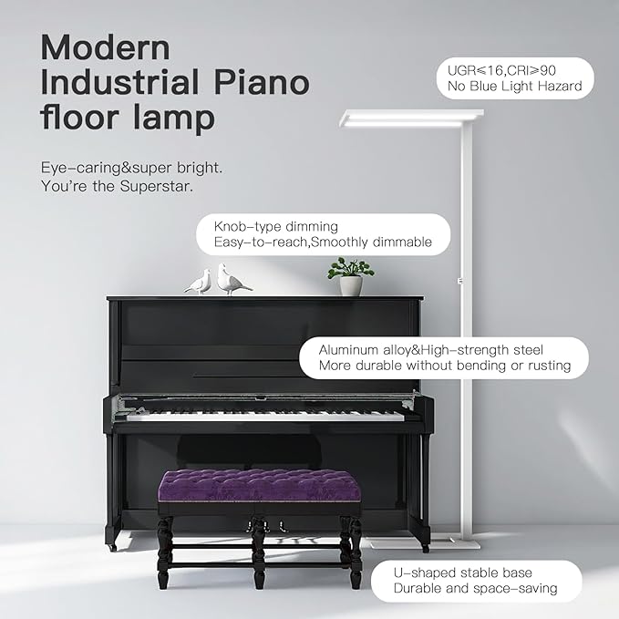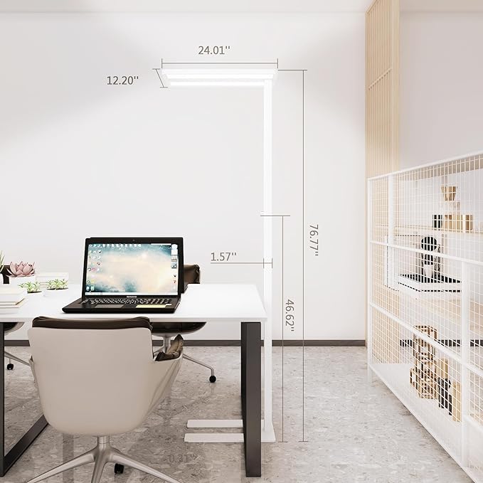 STERREN 76" Led Floor Lamp,80W White Modern Free-Standing Lamp,10000LM Dimmable Eye-Care Tall Reading Lamp for Reading Study Room,Office,Meeting Room,4000K Natural Daylight