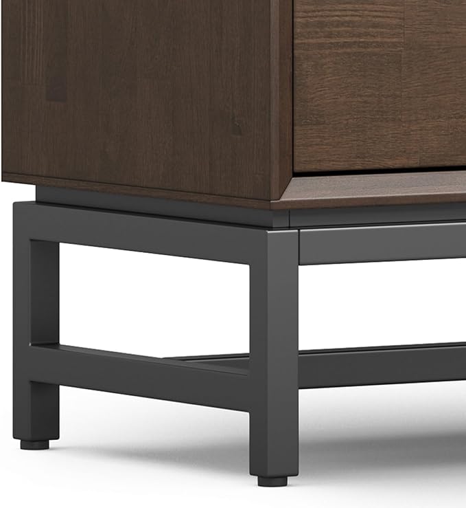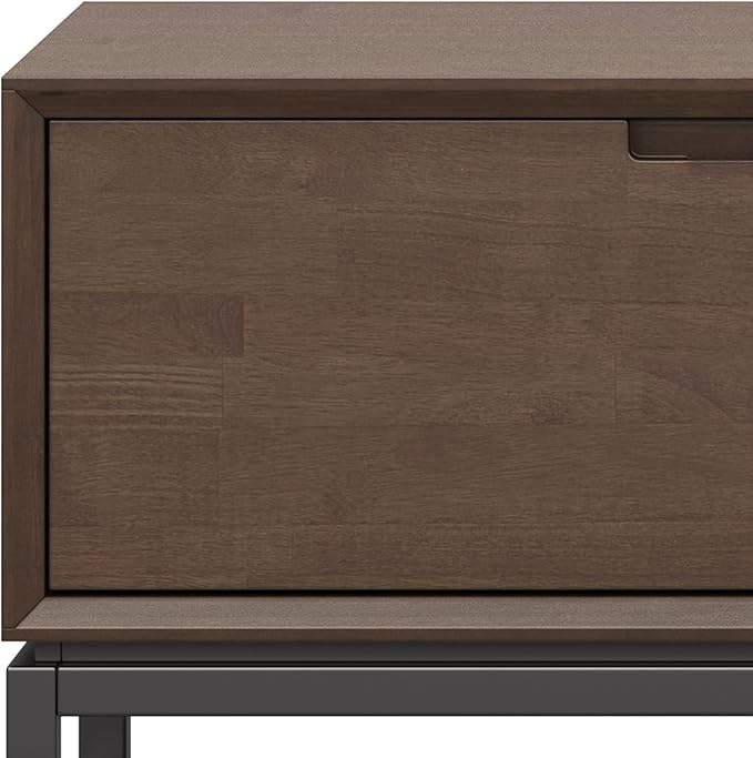 SIMPLIHOME Banting SOLID HARDWOOD Wide Modern Industrial Media Stand for TVs up to 80 inches for The Living Room and Entertainment Center, 72 inch, Walnut Brown