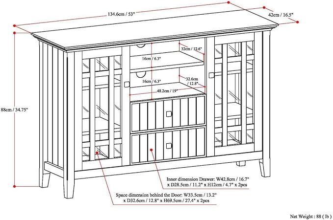 About This Dimensions: 16.5" D x 53" W x 34.7" H Handcrafted with care using the finest quality solid wood...