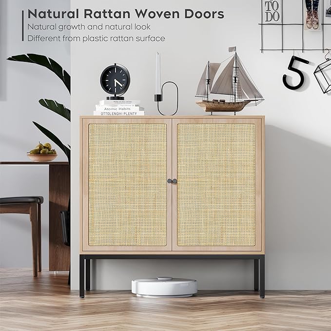 About This MODERN AND CLASSIC: The buffet table are paired with natural rattan, handmade craftsmanship and bohemian style, The clean...