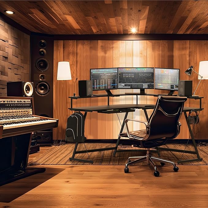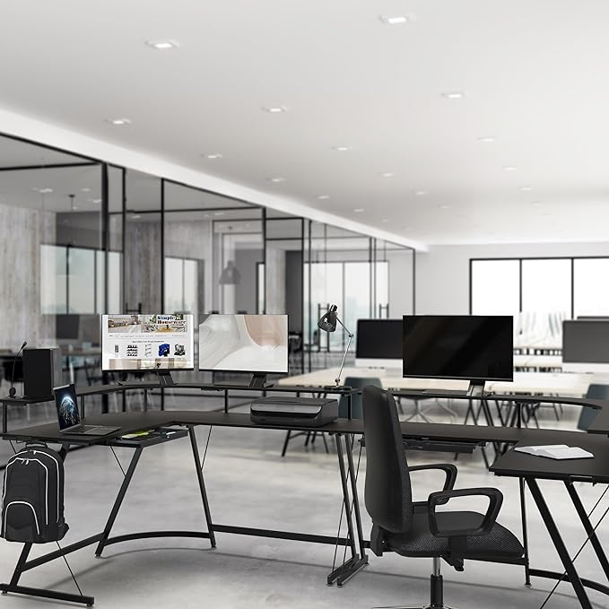 About This L-shaped 3 piece corner computer desk saves space in home office, dorm room. U shape monitor shelf provides...