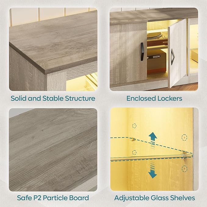 Bestier 80 Inch TV Stand for Large TVs 55/65/75/85/ inch, LED Entertainment Center with Two Cabinets, Adjustable Glass Shelves & Cable Management, Gaming Tv Console for Living Room, Wash White