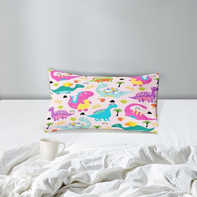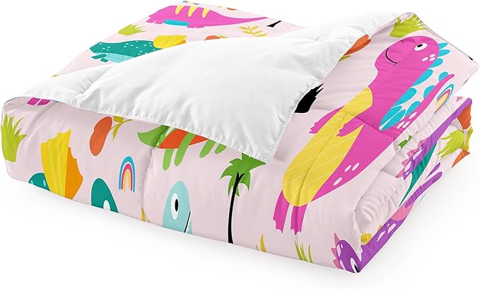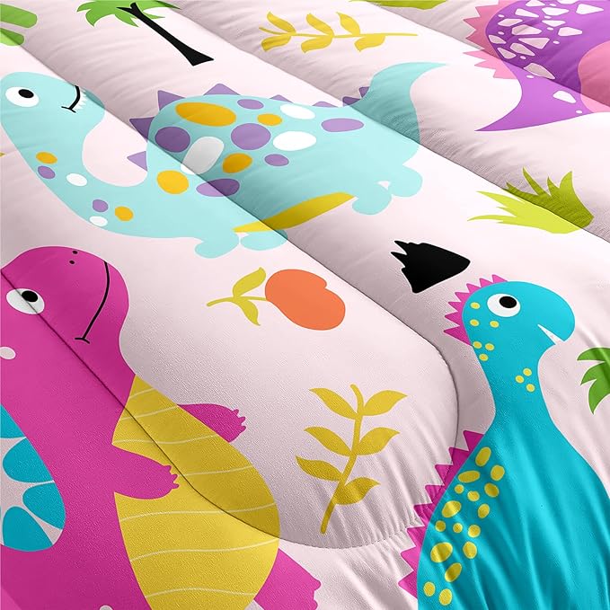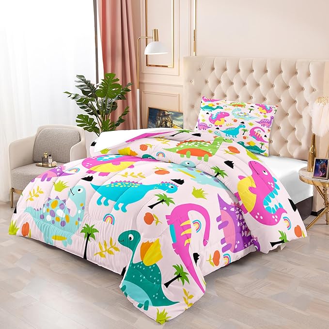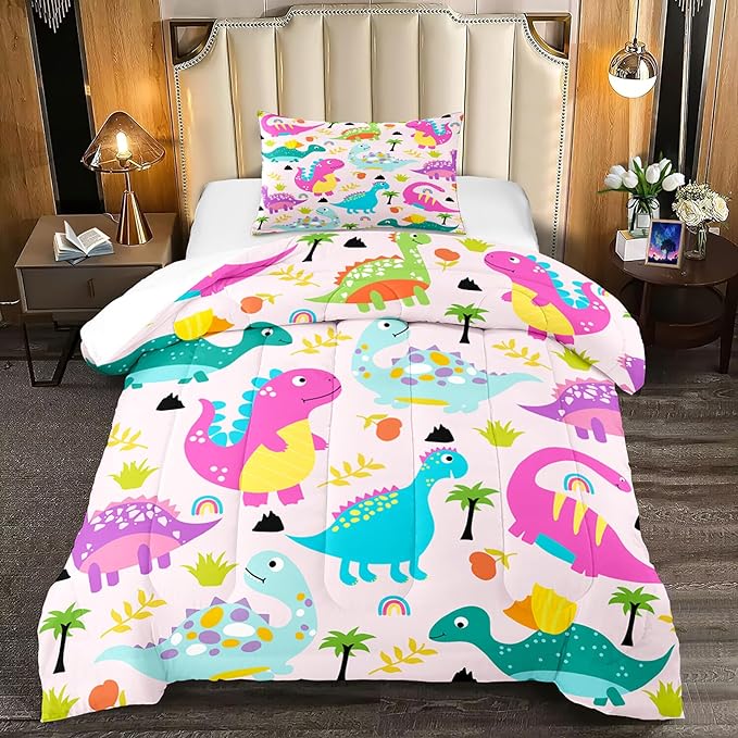 Dinosaur Twin Bedding Set, Cartoon Dinosaur Comforter Set Twin Girl Bedding Set for Girls Room Soft Breathable Dino Quilt Kids Bedding Set for All Season, 1 Comforter 1 Pillowcase
