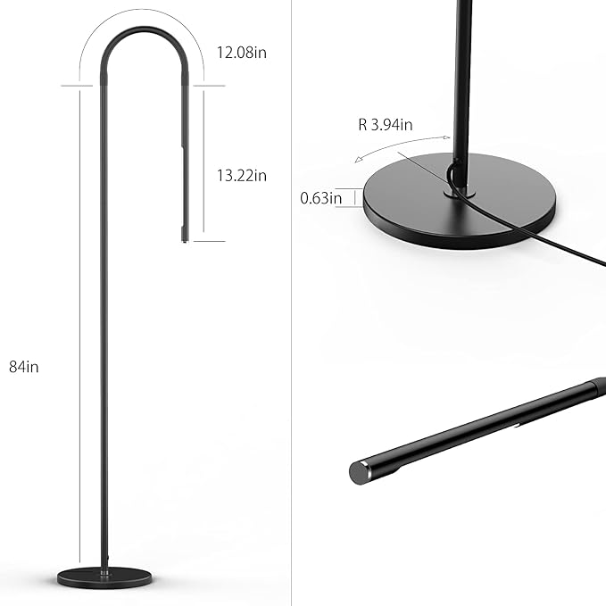 LED Floor Lamp,Dimmable Floor 5 Brightness Levels & 4Color Temperature, 7W, Touch Control, Adjustable Gooseneck, Memory Function, Standing Lamp for Living Room, Bedroom, Office, Study (①Black)