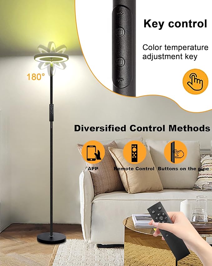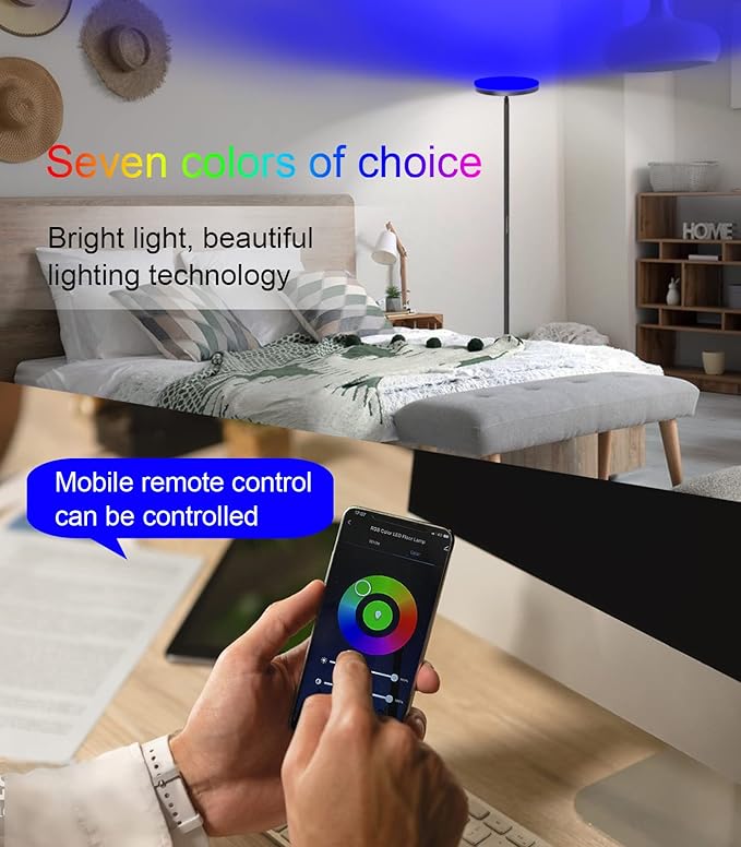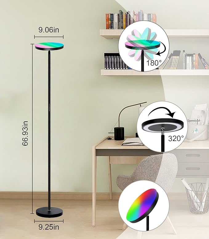 About This đăDouble Sided Lighting DesignăSmart floor lamp features a double-sided lighting design.The upward side is an RGB light,RGB main...