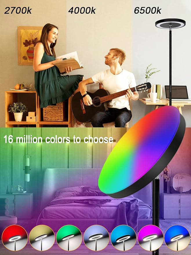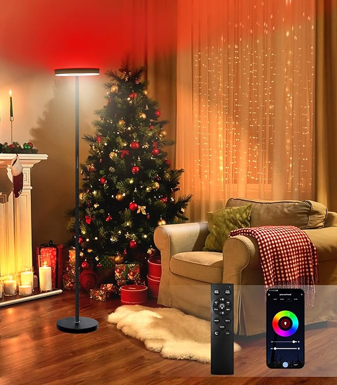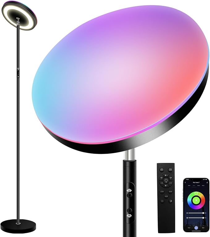 Ovesnty Floor Lamp, Double Sided Lighting LED Modern Floor Lamps, Color Changing & Dimmable Tall Standing Light with Remote Smart App Bright Corner Floor Lamp for Living Room Bedroom Office