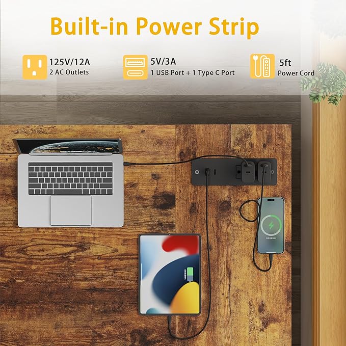 About This L Shape Desk with Power Outlets - The l desk has built-in power outlets featuring two AC outlets,...