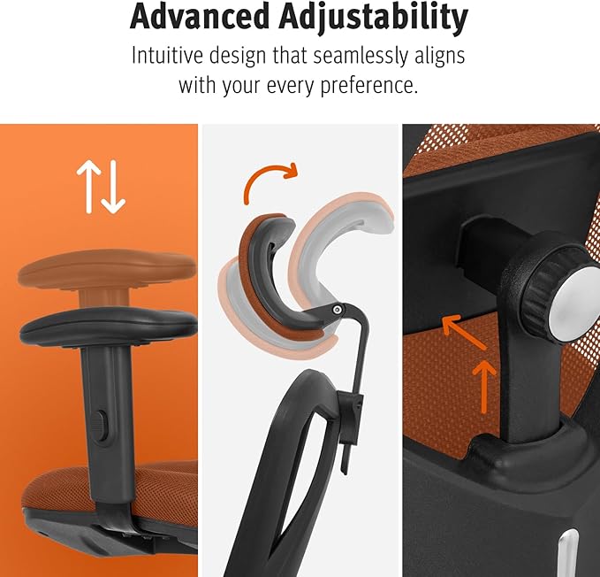 Duramont Office Chair Ergonomic Adjustable Lumbar Support and Rollerblade Wheels - Desk Chair with High Back Breathable Mesh - Thick Seat Cushion, Head, and Arm Rests control BROWN