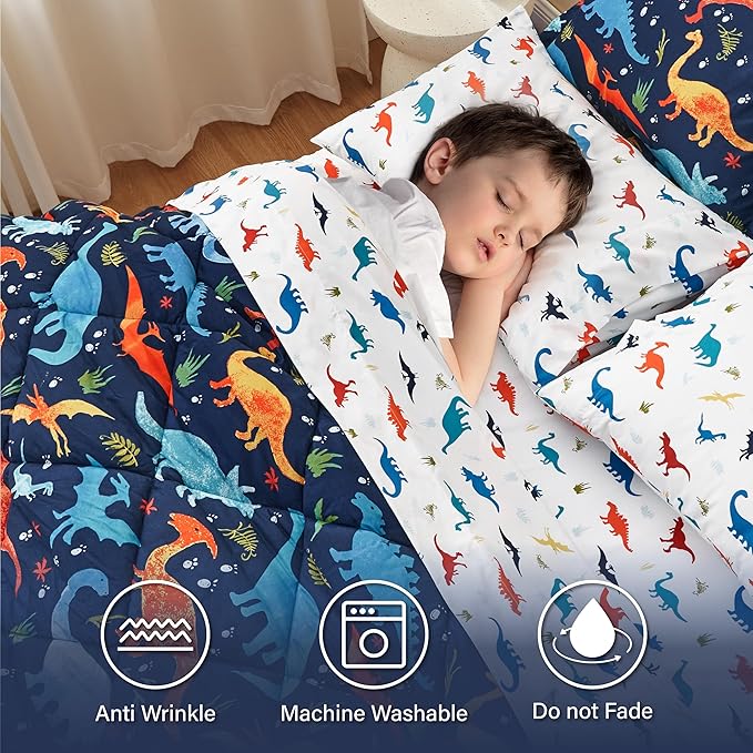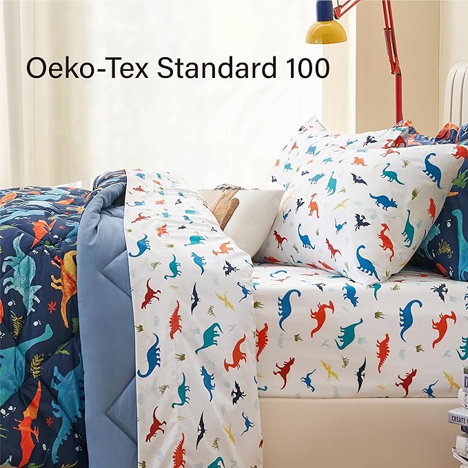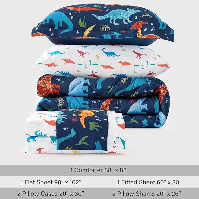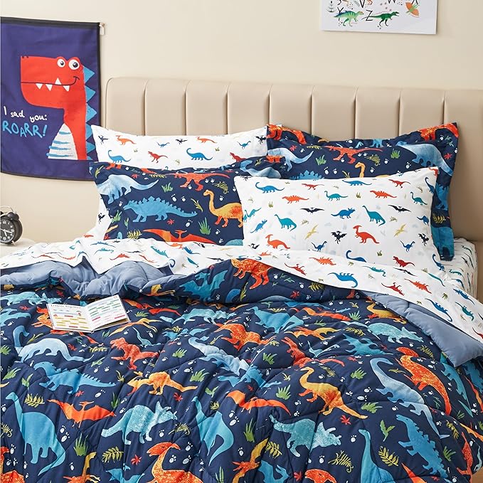 Kids Queen Dinosaur Bedding Comforter Set for Boys, 7 Pieces Queen Size Dinosaur Kids Bedding Set, Super Soft Lightweight Microfiber Comforter Set with Sheets for All Seasons