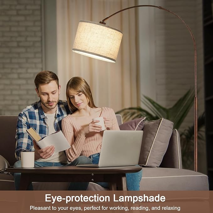 Floor Lamp for Living Room, Vintage Arc Floor Lamp with Adjustable Lamp Head, Tall Pole Lamp with On/Off Pedal Switch, Over Couch Arched Reading Light for Bedroom, Office, Study Room (Antique Bronze)