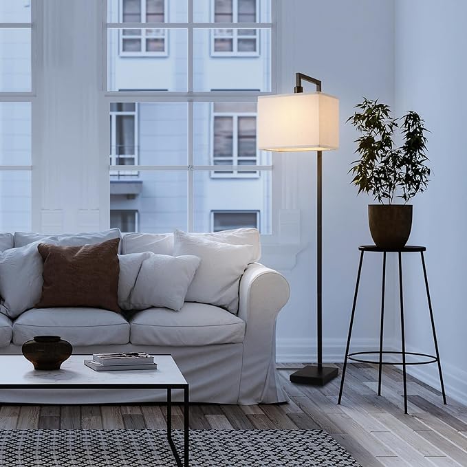 Globe Electric 61000052 60" Floor Lamp, Matte Black, Square White Fabric Shade, On/Off Rotary Switch on Socket, Square Rod, Reading Lamp, Home Office Accessories, Home Décor, Home Improvement
