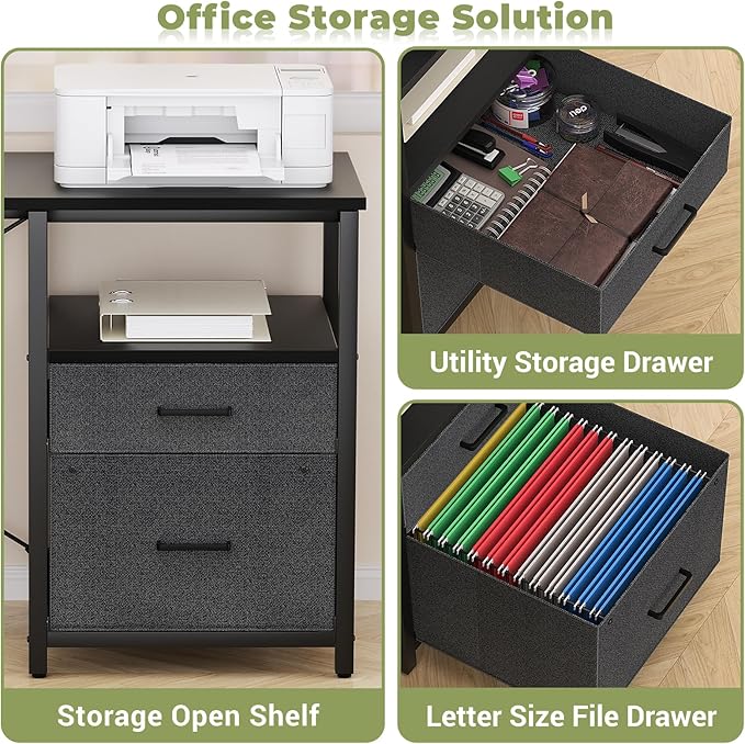 Homieasy L Shaped Computer Desk with Storage File Drawer, Reversible Home Office Desk with Recessed Power Strip and Led Strip, Corner Gaming Desk Work Study Table with Monitor Stand, Black