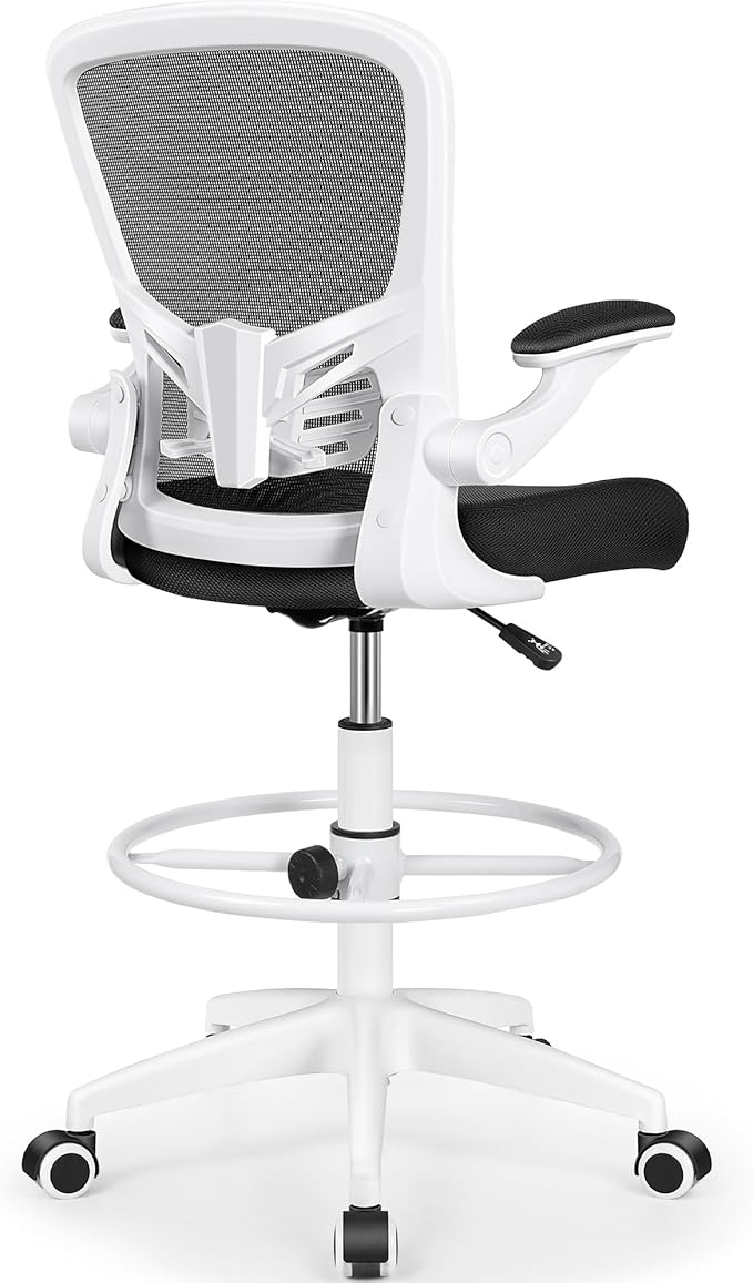 MINLOVE Ergonomic Drafting Office Chair, Tall Office Chair with Flip-up Armrests Executive Ergonomic Computer Standing Desk Chair with Lumbar Support and Adjustable Footrest(White)