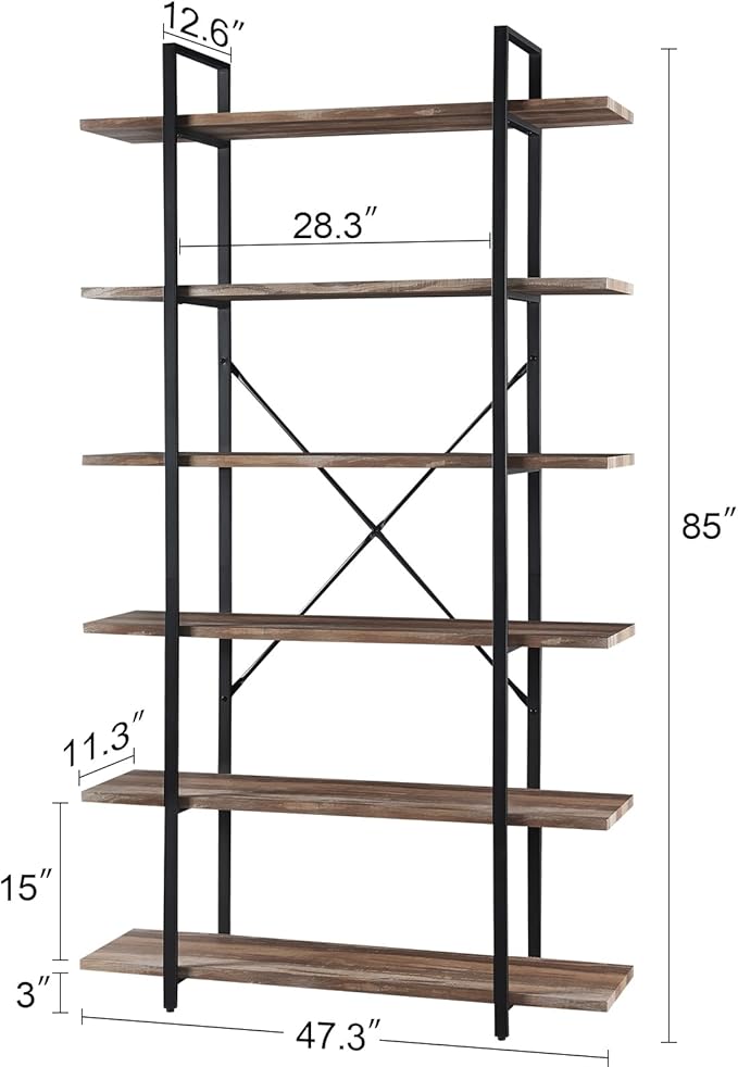 HOMISSUE Bookshelf,6-Tier Tall Bookshelf Industrial Bookcase and Bookshelves,Rustic Storage Rack with Open Shelves for Living Room Bedroom and Kitchen