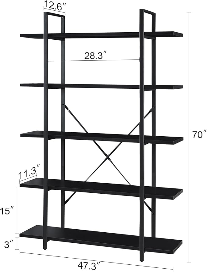 HOMISSUE Bookshelf,5-Tier Bookshelf Industrial Bookcase and Bookshelves,Rustic Storage Rack with Open Shelves for Living Room Bedroom and Kitchen