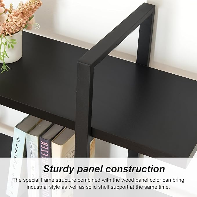 About This 【Industrial Rustic Bookshelf】: Minimalist industrial bookshelves crafted from vintage rustic MDF wood shelves and black metal frames ,add...