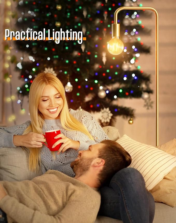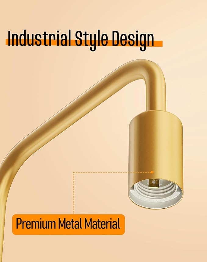 QiMH Industrial Floor Lamp for Living Room, Farmhouse Metal Standing Lamp, Modern Tall Lamp for Bedroom Office Minimalist Floor Lamps Home Decor(E26 Socket, Foot Switch), Brass Gold