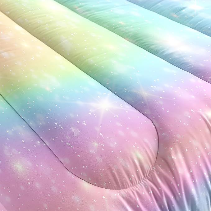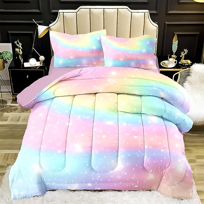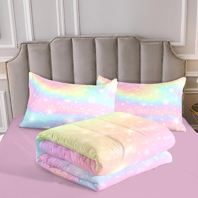 Kids Comforter Bedding Set 5 Piece Super Soft Breathable Print Kids Bedding Sets for Girls, Washable Durable Comforter Set with Comforter, Shams, Sheet, 2 Pillowcases (Gradient Color)