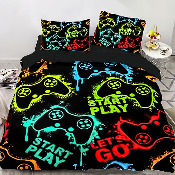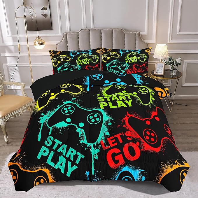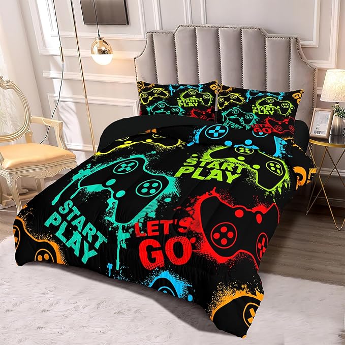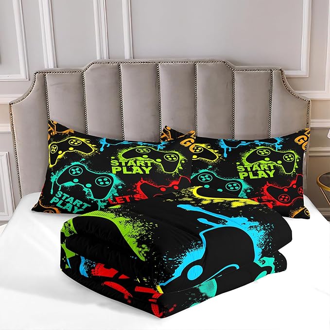 Kids Comforter Bedding Set Twin Size, 3 Piece Super Soft Breathable Print Kids Bedding Sets for Boys, Machine Washable Durable Comforter Set with Comforter and 2 Pillowcases (Twin, GamePad)