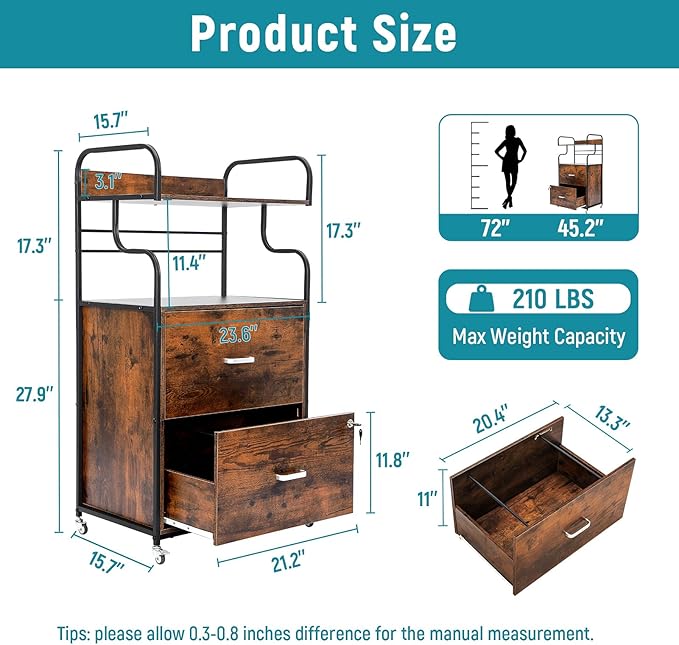 About This 【DURABLE VERTICAL FILE CABINET】: Our 2 Drawer Wooden File Cabinets is made of thickened boards and high quality...