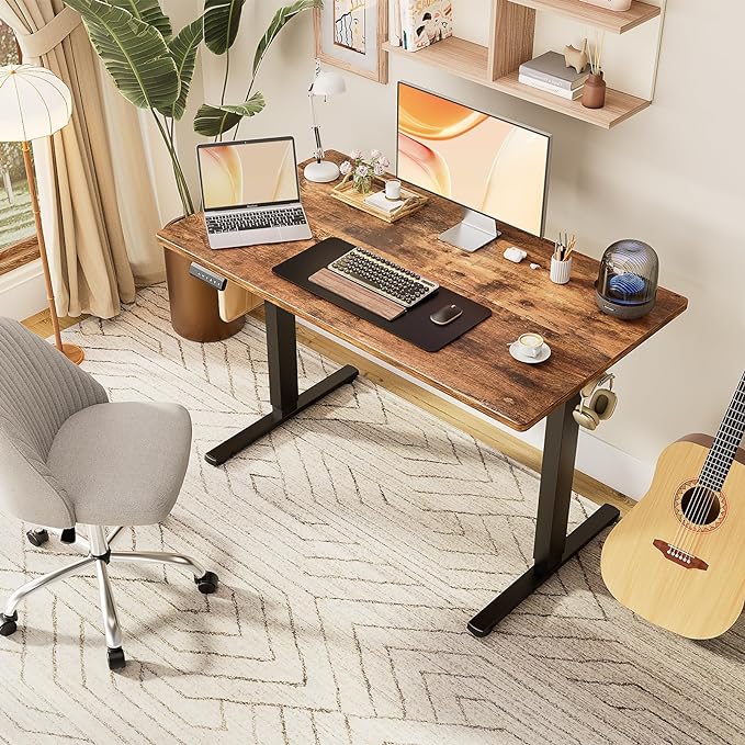 Sweetcrispy Standing Desk Adjustable Height, 63inch Electric Sit Stand up Desk for Home Office, Modern Rising Work Table for Computer Laptop, Lift Gaming Desk Sturdy Ergonomic Workstation, Rust Brown