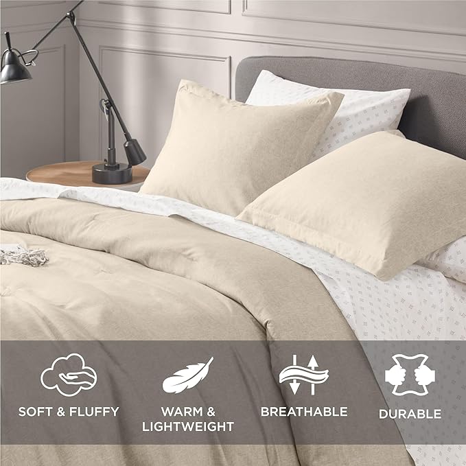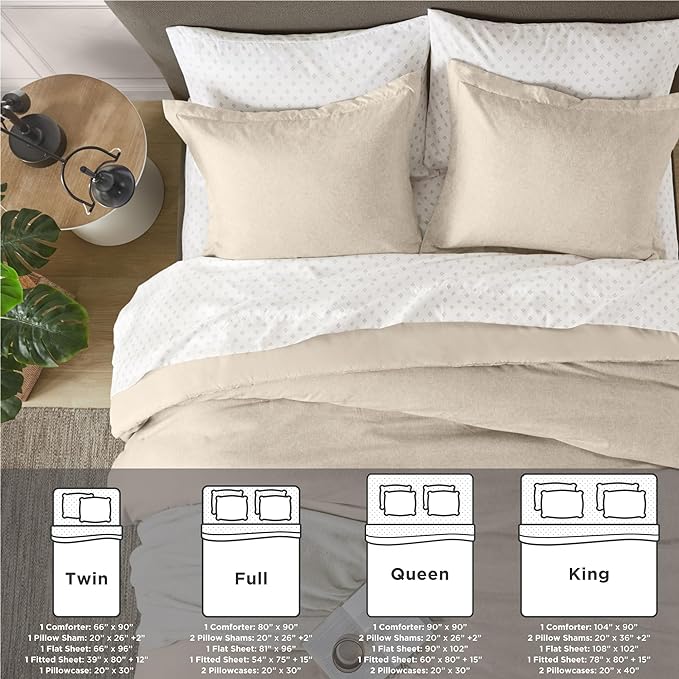 About This Modern Design: This neutral solid bedding comforter set with the printed chambray-like design adds a denim touch of...